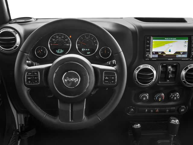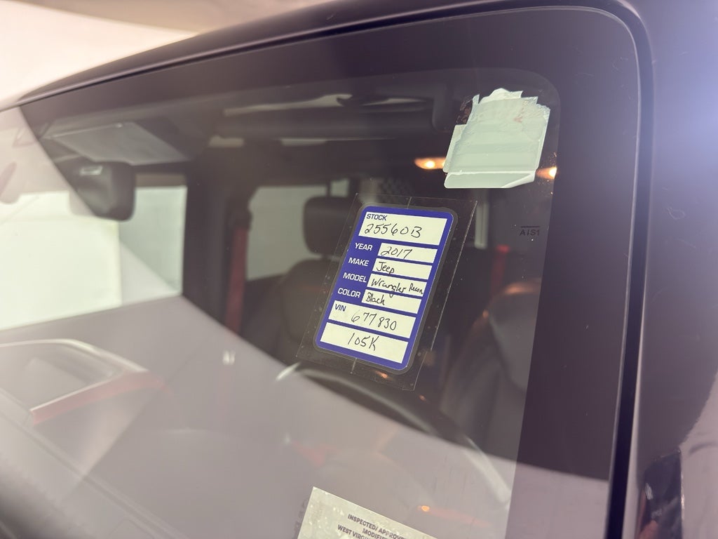 with XM/Sirus Satellite Radio you are no longer restricted by poor quality local radio stations while driving this 2017 Jeep Wrangler . Anywhere on the planet, you will have hundreds of digital stations to choose from. The leather seats in this mid-size suv are a must for buyers looking for comfort, durability, and style. The vehicle keeps you comfortable with Auto Climate. Our dealership has already run the CARFAX report and it is clean. A clean CARFAX is a great asset for resale value in the future. Bluetooth® technology is built into the vehicle, keeping your hands on the steering wheel and your focus on the road. You'll never again be lost in a crowded city or a country region with the navigation system on this unit. This mid-size suv has an elegant black exterior finish. The Jeep Wrangler has a V6, 3.6L high output engine. The Jeep Wrangler has four wheel drive capabilities.
