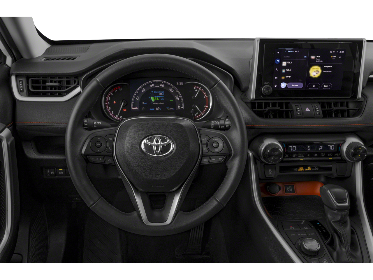 The exterior of the Toyota RAV4 Adventure boasts a rugged aesthetic with its unique styling elements, including distinctive wheel designs and a bold front grille. The interior offers ample space, comfortably accommodating up to five passengers, and is crafted with high-quality materials for a refined feel. Advanced technology features include a user-friendly infotainment system with a touchscreen display, providing seamless connectivity and entertainment options.