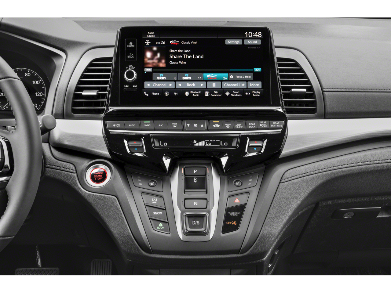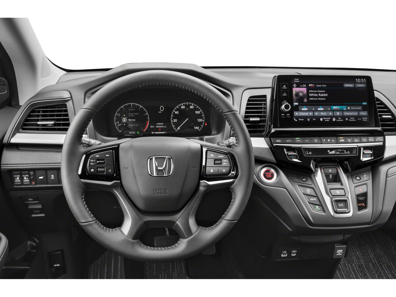 - Radio: 160-Watt AM/FM/HD/SiriusXM Audio System -inc: 7 speakers including subwoofer, 9" color touchscreen display, 7" TFT Meter, Bluetooth HandsFreeLink, Bluetooth streaming audio, HondaLink, Speed-Sensitive Volume Compensation (SVC), Radio Data System (RDS), wireless Apple CarPlay compatibility, wireless Android Auto compatibility, 2.5-amp USB smartphone/audio interface, CabinTalk in-car PA system, illuminated steering wheel-mounted controls and fin-type roof-mounted antenna, All SiriusXM services require a subscription, sold separately by SiriusXM after the trial period, If you decide to continue service, the plan you choose will automatically renew at the then-current rates, Fees and taxes apply, See the SiriusXM customer agreement and privacy policy at www.siriusxm.com for full terms and how to cancel, which includes calling 1-866-635-2349, Available in the 48 contiguous U.S, and D.C, Some services and features are subject to device capabilities and location restrictions, All fees, content and features are subject to change, SiriusXM, Pandora and all related logos are trademarks of Sirius XM Radio Inc, and its respective subsidiaries